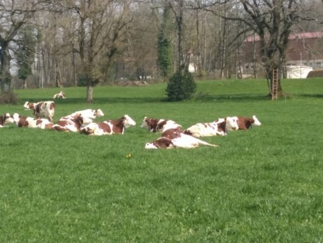Malgré le confinement le printemps arrive et nos vaches retrouvent l'herbe des prairies. Cela devient pressant car les stocks de fourrage s'amenuisent.
