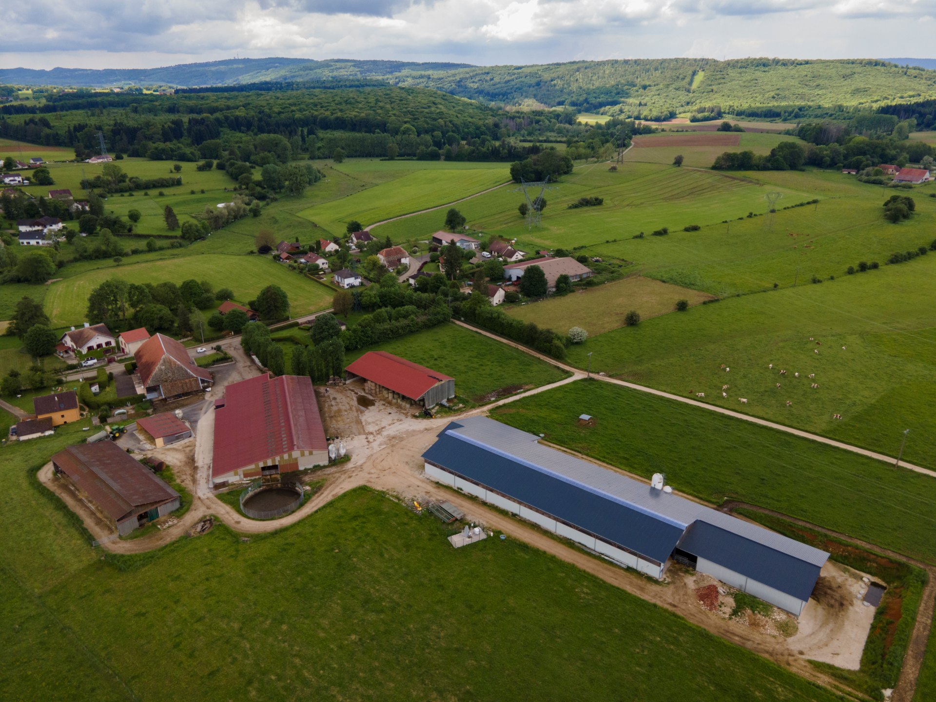 Nous sommes situés à Nancray dans le Doubs, sur la zone de l’AOP Comté à une altitude de 450 mètres et en périphérie de Besançon, la capitale de la Franche-Comté. Nous sommes sur “une zone de captage”. Cela signifie que nos terrains de 190 hectares se situent sur la zone qui alimente en eau Besançon et les communes alentour.